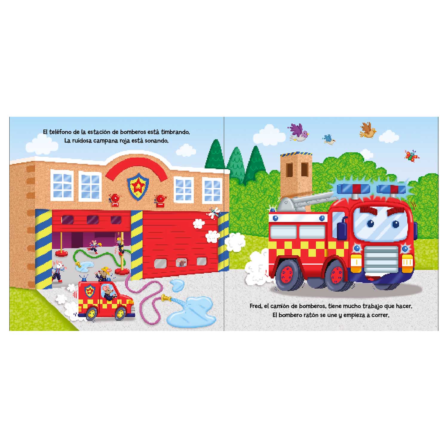 ¡Fred, el Camión de Bomberos, sale al rescate! Un cuento para que los pequeños disfruten la lectura, con divertidas ilustraciones y texturas.