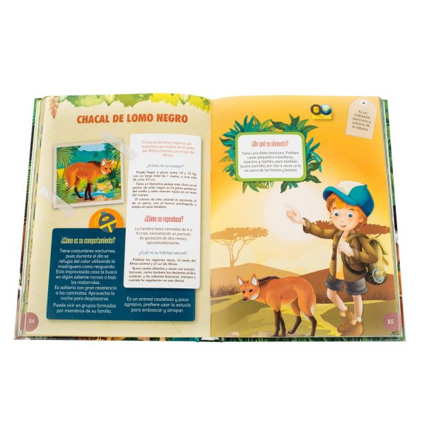 Este es un interesante libro, mediante el cual a través de un Safari Fotográfico, los niños podrán conocer muchos animales exóticos: como es su aspecto, pelaje, forma de vida , alimentación etc.